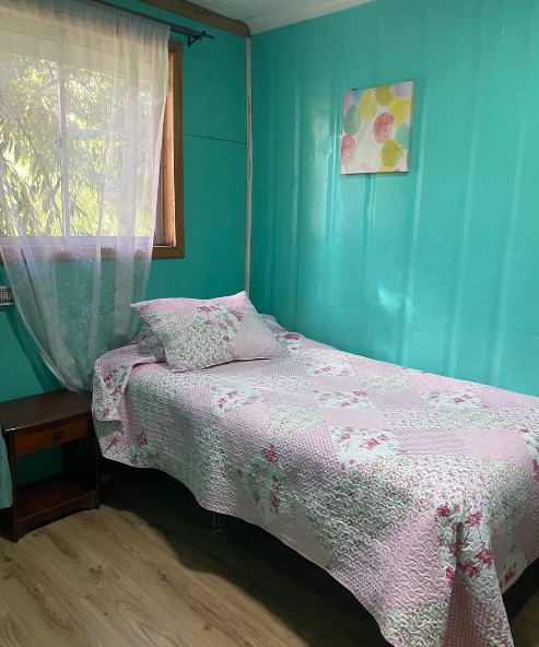 Esta acogedora cabaña cuenta con dos dormitorios y un baño, dispone de 3 camas ( una de dos plazas y dos de una plaza y media), ideal para parejas o familia pequeña.